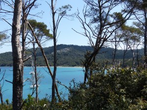 Being the largest of 3 three islands, measuring 7km by 3 km and a population of 200 people, it was bought by a Belgian explorer , François Fournier , in 1912 as a wedding present for his wife – you’ve got to hate men that do that, what’s wrong with a ring and a night down the pub ?. I can see why though, a mixture of cypress and eucalyptus, creating a heady scent as we got off the ferry and walked to the finest beach on the island, la plage de Notre Dame, the morning sun glistening off the gin clear water of the Mediterranean Sea.