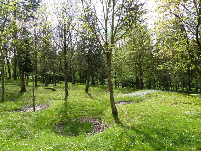 Around the corner from Verdun , lies, or rather lay the village of Fleury. This village, no longer exists since it was completely destroyed in the battle with all of its inhabitants either leaving or perishing. Today, as a mark of respect, the site of the village has been recreated with street names and markers where the occupants used to be, the area, now reforested, still bears the scars of the intense shelling that destroyed the area. The town, has city limits, marked on the main road, a church has been erected to commemorate and even has a mayor, as all town do. A fitting honour I beleive.